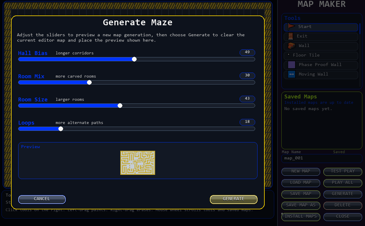 There's a built-in Maze Generator, so you do not have to draw it out by hand every time.