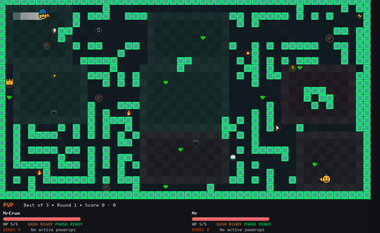 Face off with your friend and see who can react the fastest. During pvp, Players Dash skill causes damage to the other player. incase you run out of powerups. The Map is generated. Before each round both players select one of three random loadout upgrades. Sometimes luck decides.