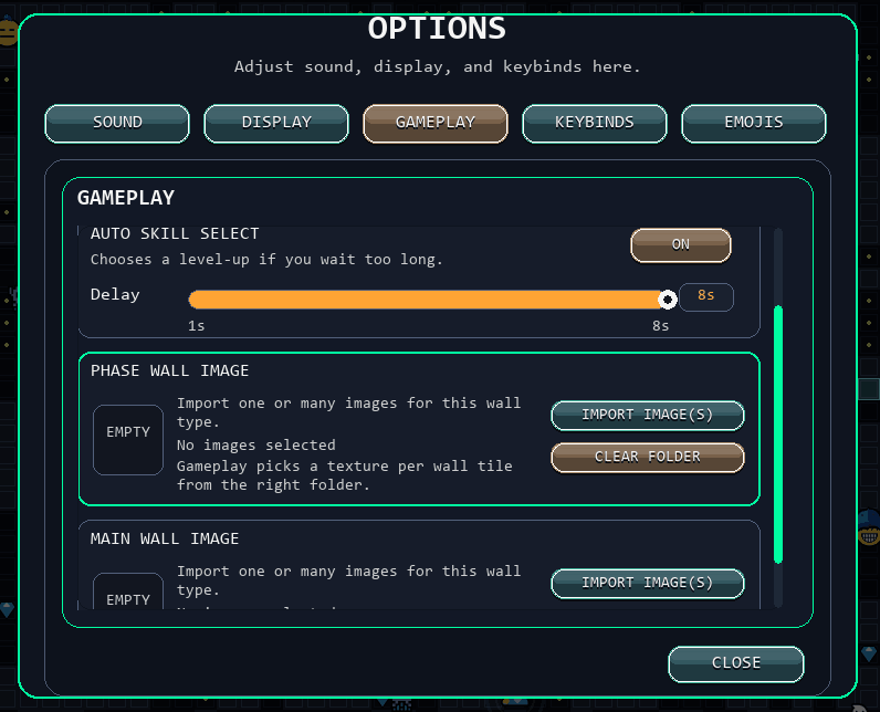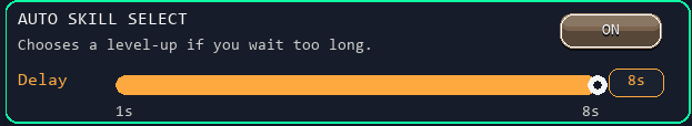 For players who want to sit back and run, you can set Auto Skill Select to choose a level up skill for you after a delay. You can still pick your skill if you hit the level up key beofre it picks it for you.