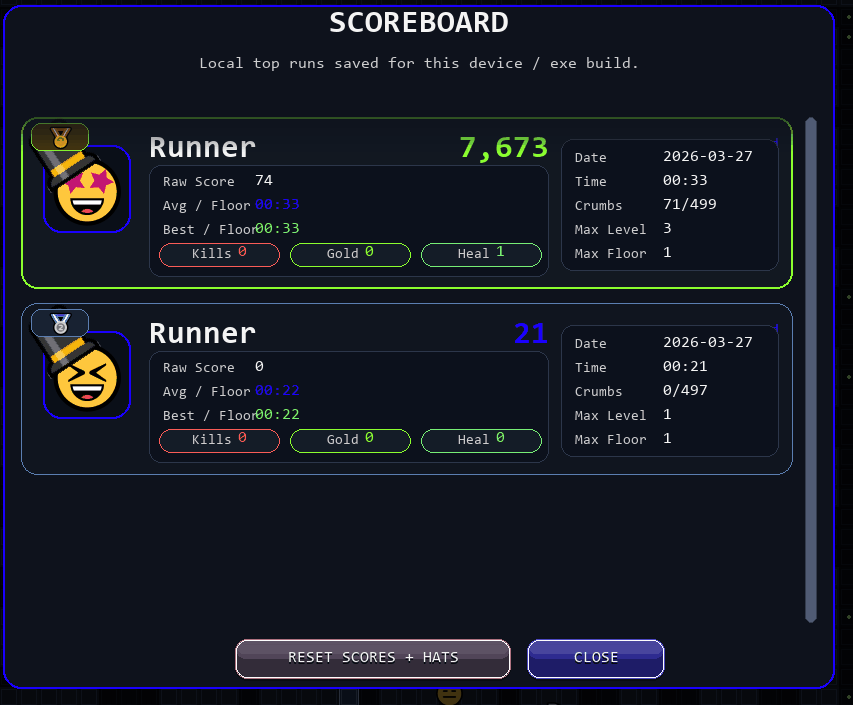 CrumRun is Pac-Man like, but faster, competitive, and fully customizable, focused on movement, optimization, and replayability.